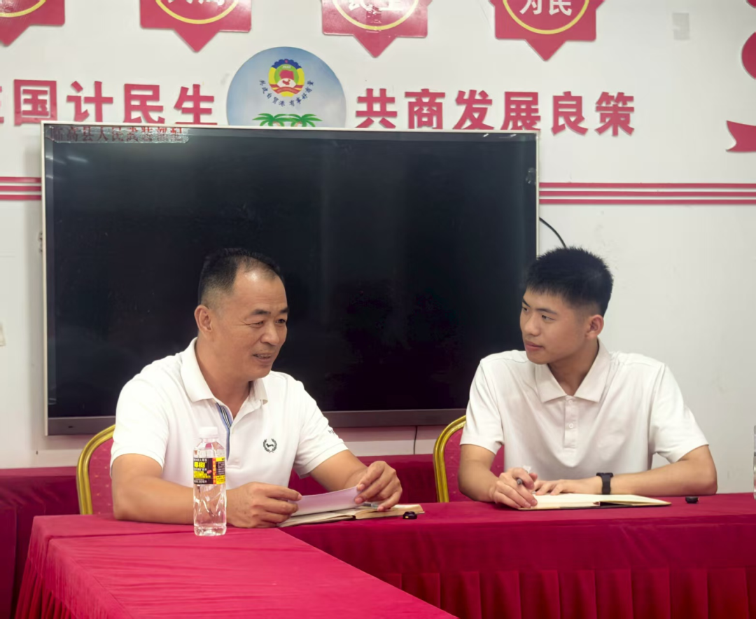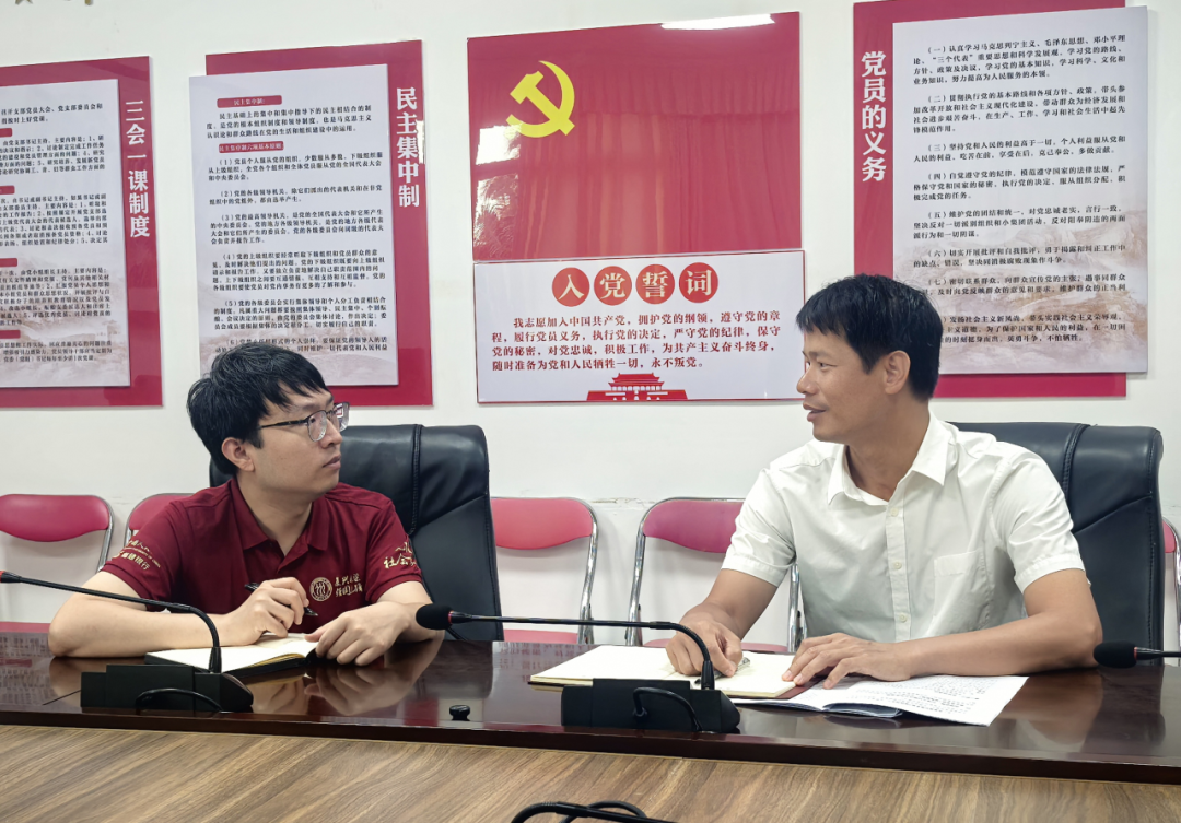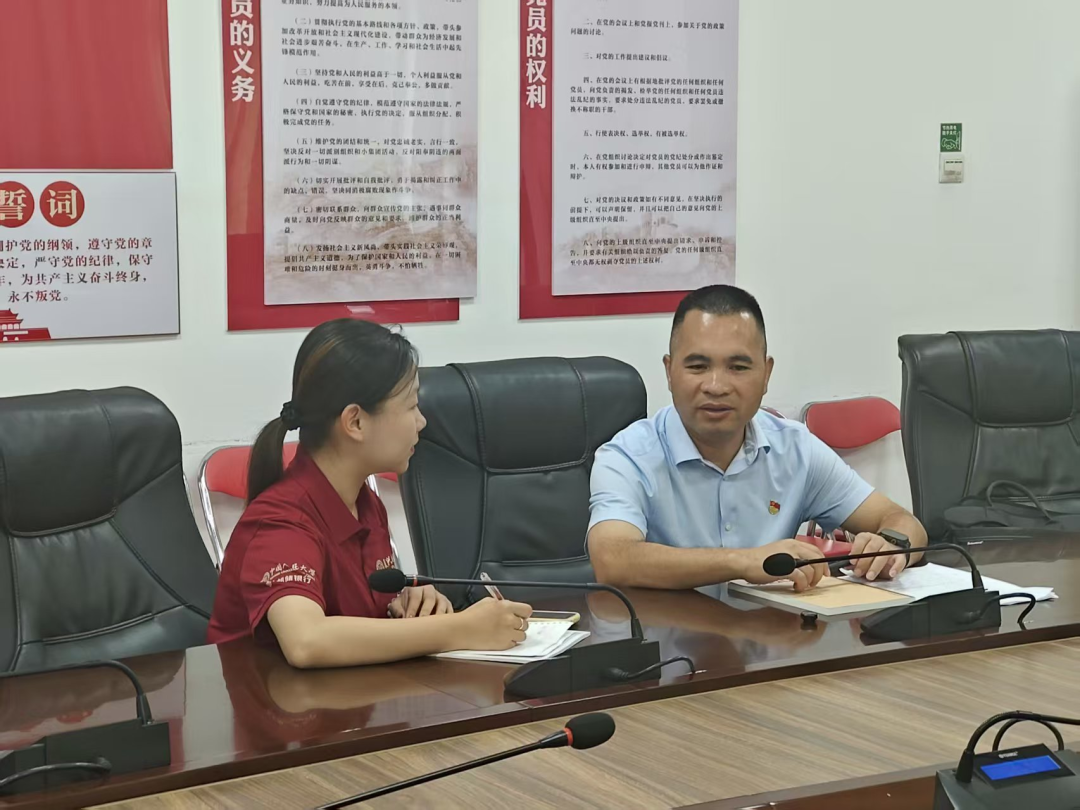 ▲应用经济学院博士生陈芷琪访谈临高县波莲镇镇长陈天吉