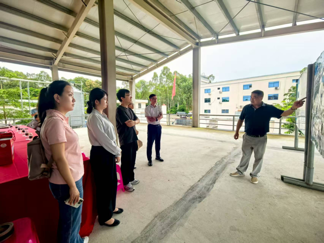 ▲访谈团参访临高旺铺群育雏+蛋鸡养殖标准一体化示范基地