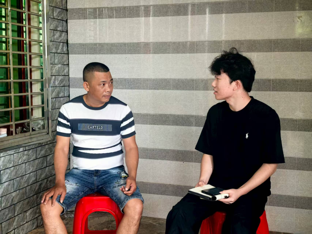 ▲应用经济学院本科生徐才疆访谈临高县多文镇抱利村村支书陈琦