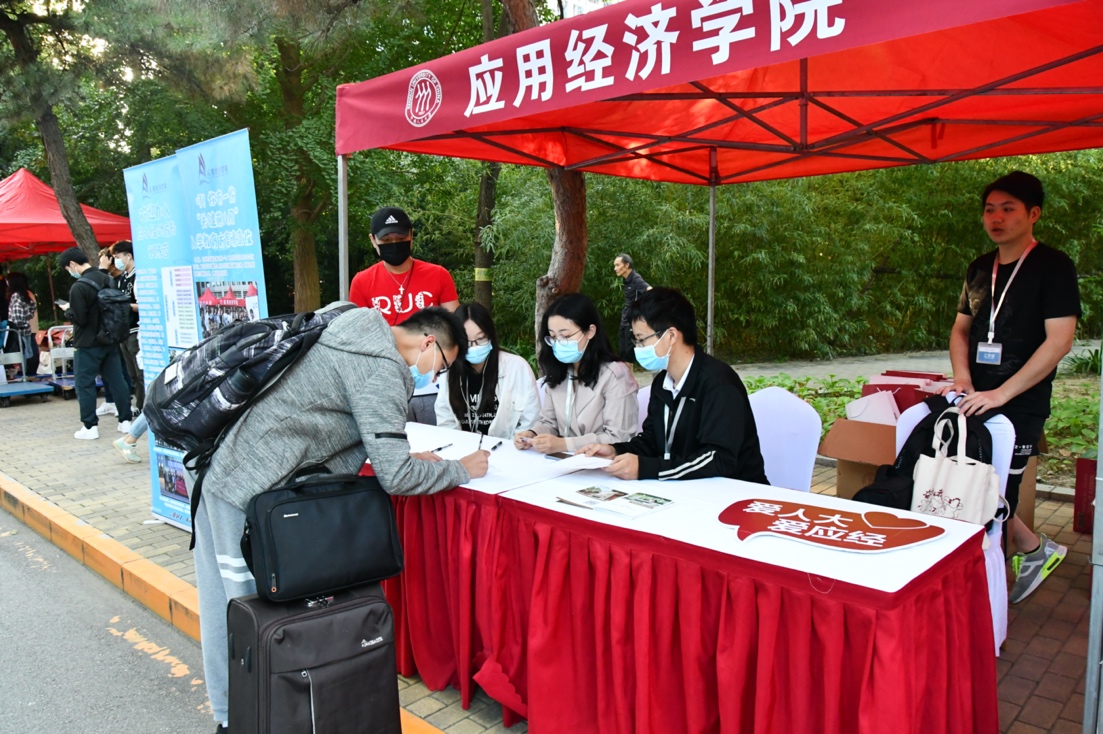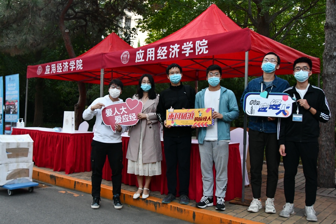 2020年9月19日,中国人民大学应用经济学院2020级硕士研究生新生迎新日各项活动顺利进行并圆满结束,学院迎来了71位硕士研究生。中国人民大学副校长刘元春教授来到应用经济学院展位前看望慰问学院迎新工作人员,与新生亲切交流;学工部部长罗建晖、校团委负责人杨子强、学工部副部长袁世琨来到现场了解学院准备工作;学院院长郑新业教授,副院长魏楚教授,党委副书记林晨教授等学院领导关注报到工作进程,与新同学共同畅想未来几年的校园生活,表达了学院对新生的关心,并慰问现场工作人员和志愿者。