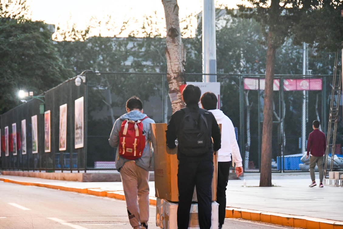 清晨的第一缕阳光还未洒下,应用经济学院的师生早已来到求是园,他们从明德楼运来物资,支起展板,共同迎接新生的到来。
