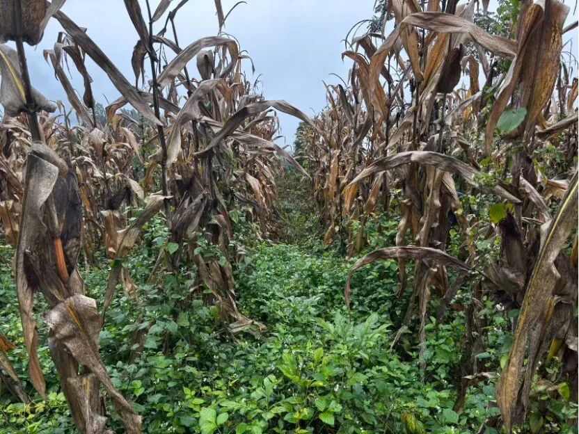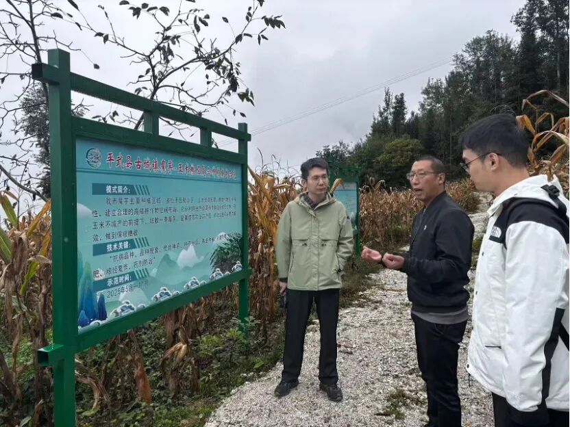 ▲调研团调研平武县古城镇魔芋玉米复合种植
