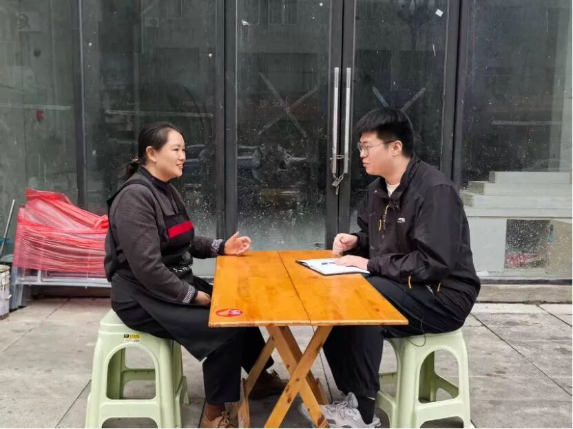▲中国人民大学应用经济学院博士生陈荣恺访谈平武县乡村振兴服务中心田永林主任