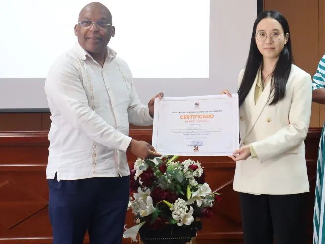 塞梅多大学内利托·安东尼奥汇报“合并账目在公司中的相关性”,卢塔迪纳·保罗汇报“安哥拉公司筹备和继承”。报告聚焦安哥拉企业发展现实问题,展现了当地学子对本国经济发展的深入思考,帮助中国学生清晰认知安哥拉企业运营现状。