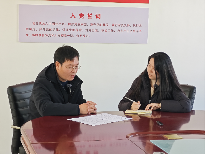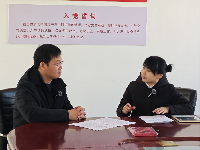 ▲中国人民大学应用经济学院博士生何奕霏访谈赞皇县黄北坪乡党委书记刘卫江