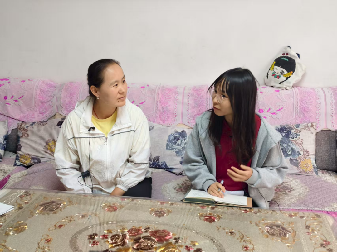 ▲中国人民大学本科生谢妮姗访谈秋子沟村脱贫户甘金莲