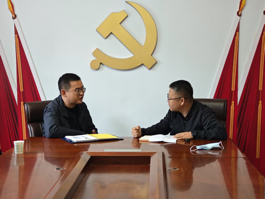 ▲中国人民大学应用经济学院孙频老师访谈千紫缘中心党委书记、千紫缘的企业董事长蔡有鹏(原田家寨村书记)