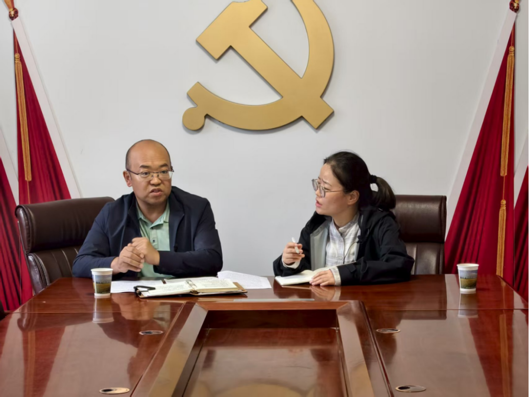 ▲青海民族大学尕藏措老师访谈湟中区大才乡党委书记罗毅邦