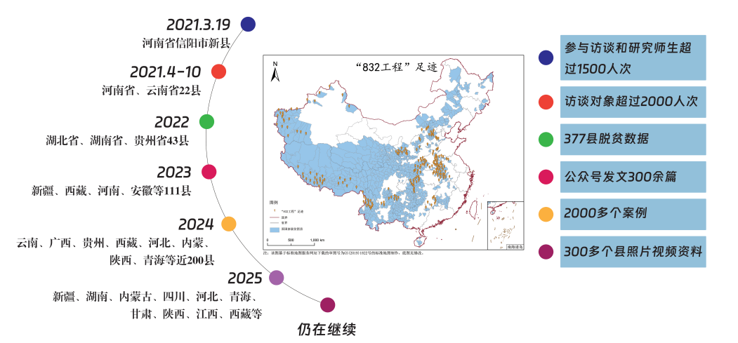 “832工程”由应用经济学院与新闻学院联合发起实施,项目计划遍访全国832个原国家级贫困县主要领导和脱贫攻坚亲历者,用“科学、准确、详实、生动”的口述历史方式全景、深度地记录和研究我国脱贫攻坚的科学探索和中国共产党人的伟大奉献,为人类发展难题搜寻低成本、可持续的答案。