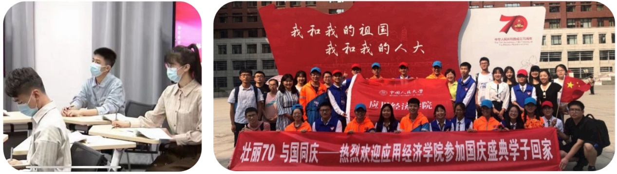 学院师生在重大时刻见证历史、贡献应经力量。习近平总书记在中国人民大学考察调研时,学院多名师生参与到思政课现场教学、师生代表座谈会等环节;在北京冬 ( 残 ) 奥会、庆祝中国共产党成立 100 周年和庆祝中华人民共和国成立 70 周年等重大活动中,积极参与庆祝大会、群众游行、文艺晚会演出、志愿服务等活动。