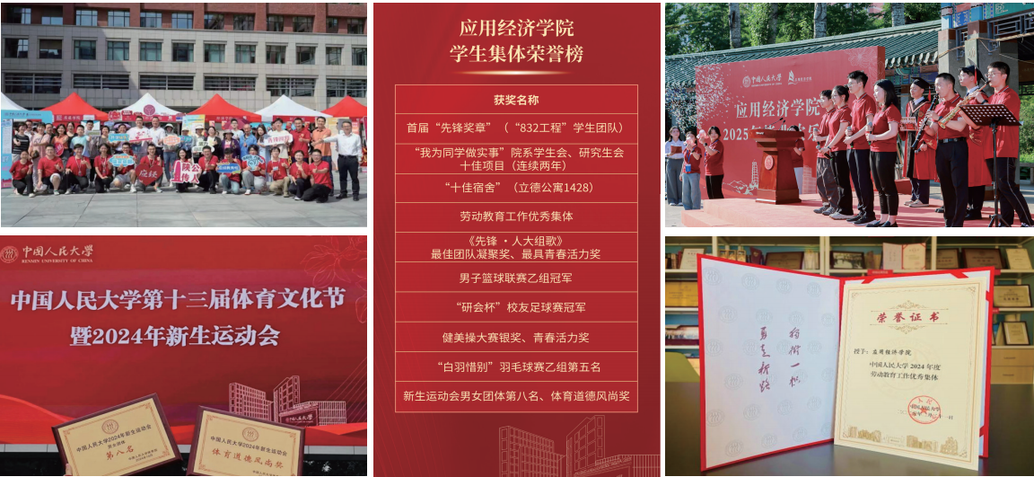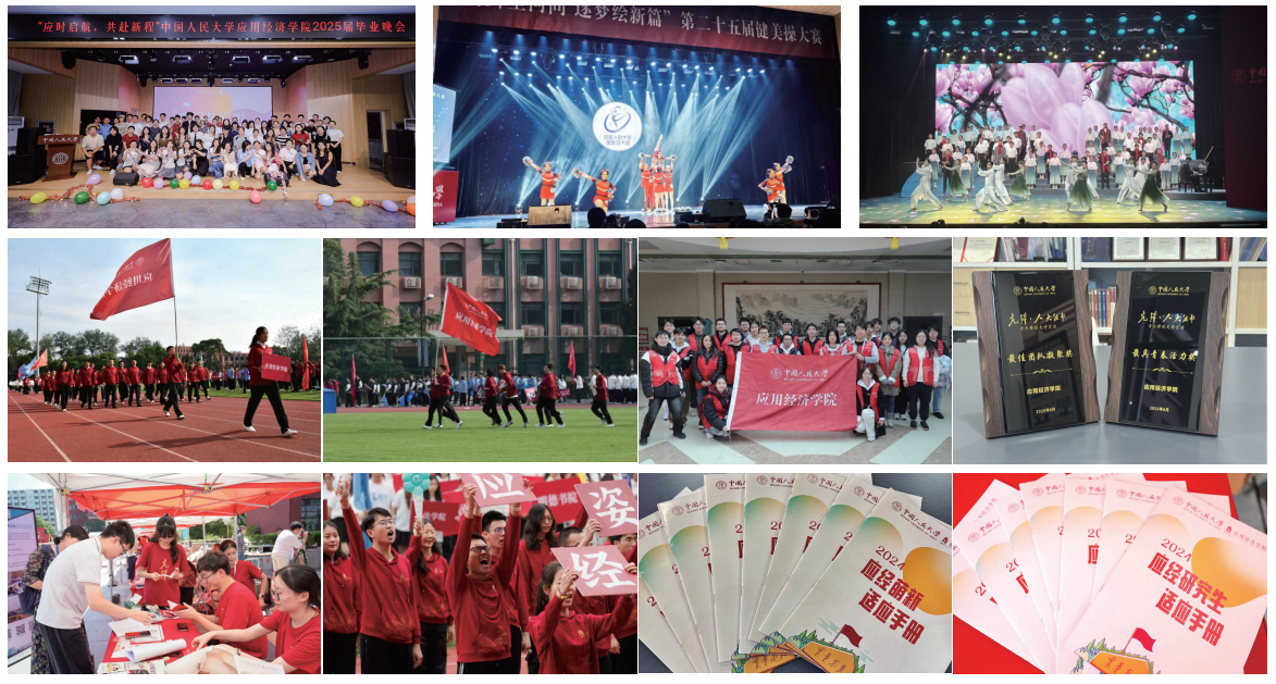 学院举办“经世杯”论文比赛,开展“AI赋能”“经世指路”“应姿博发”等学术分享活动,引导学生紧跟时代发展步伐,关注经济社会发展重大问题。学院系列学生活动连续两年入选学校“我为同学做实事”院系学生会、研究生会十佳项目,学院学子荣获国家奖学金、北京市三好学生、“融创之星”荣誉称号等多项荣誉。